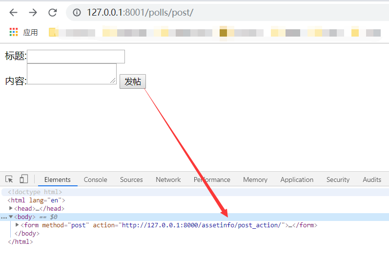 6)下面使用Django第二个项目来模拟另外一个网站,创建post.html,复制templates/assetinfo/post.html内容,并修改action路径。