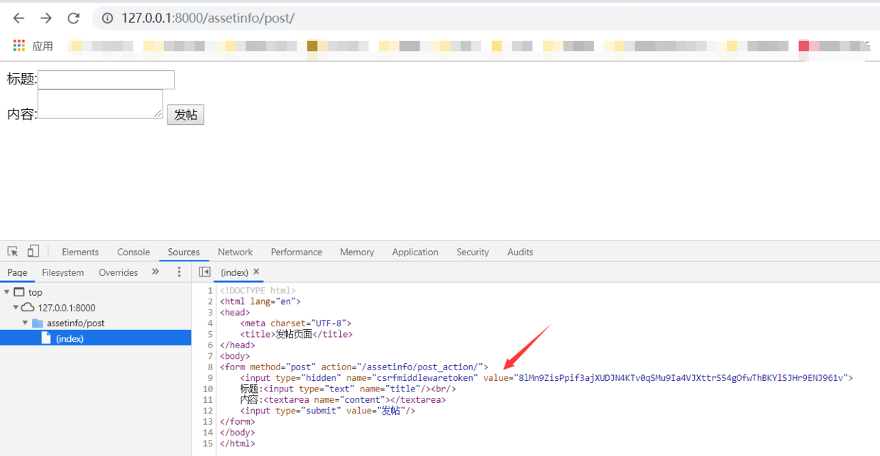 加入标签后,可以查看post.html的源代码,发现多了一个隐藏域。
