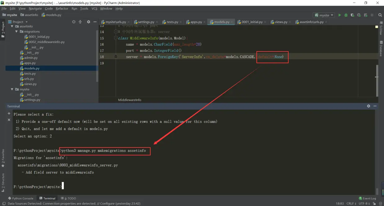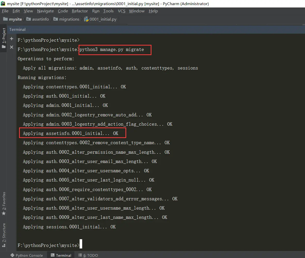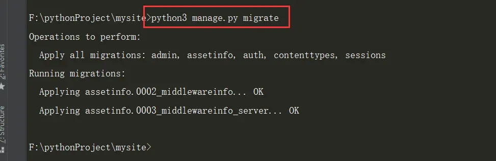 现在你的 Django 项目会包含 assetinfo 应用。接着运行下面的命令: