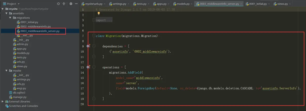 server = models.ForeignKey('ServerInfo')这句代码就让ServerInfo类和MiddlewareInfo类之间建立了一对多的关系。