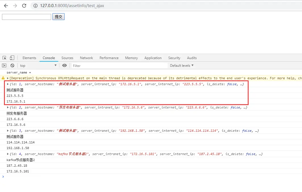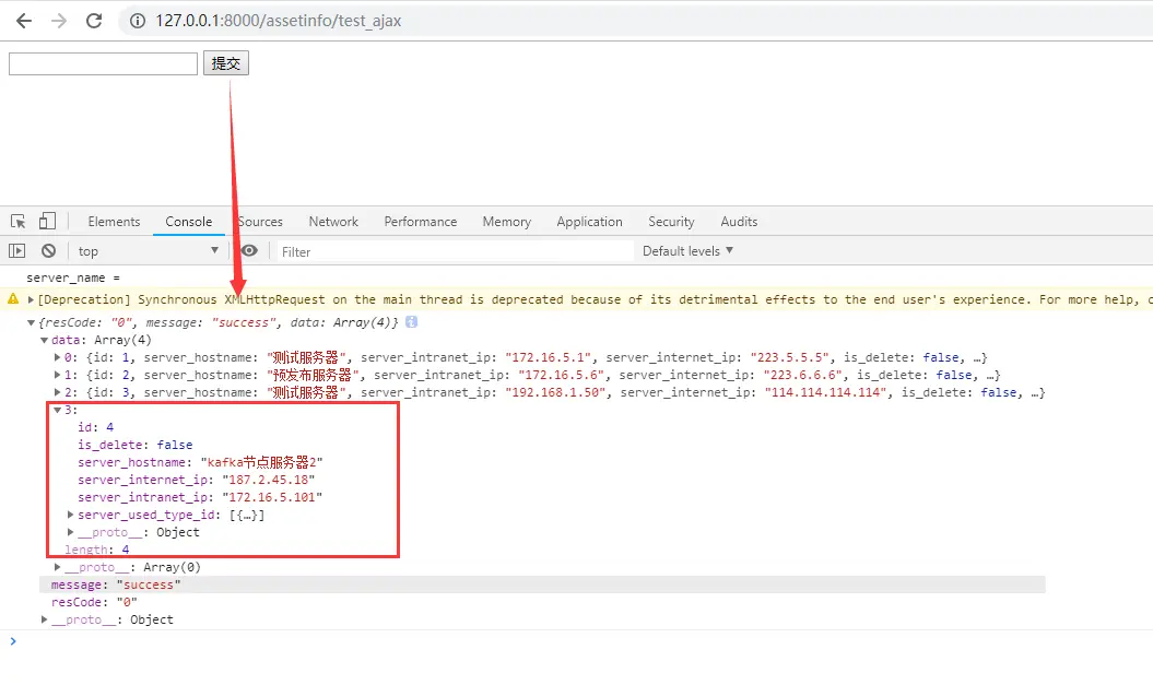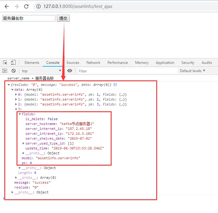 可以从浏览器的控制台看到后端返回过来的结果数据。