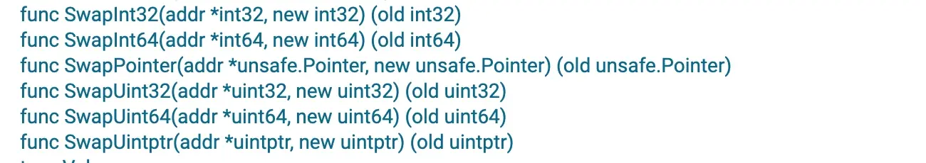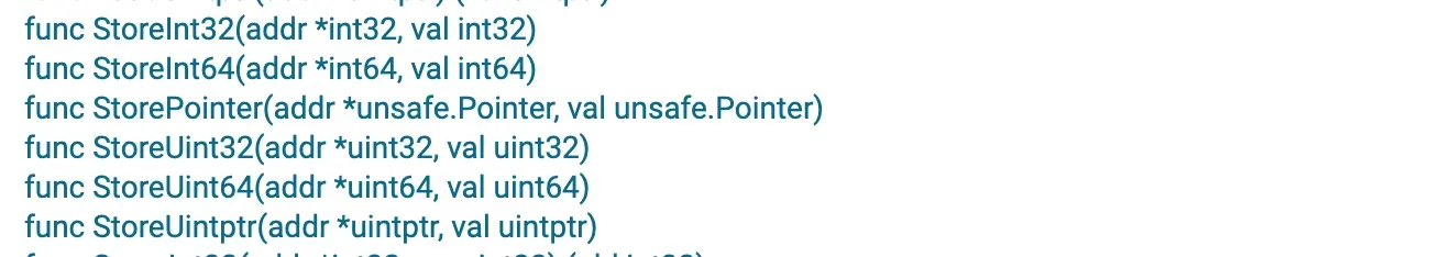 这里的「原子性」指的是当读取该指针指向的值时,CPU 不会执行任何其它针对此值的读写操作。例如,我们可以这样调用 LoadInt32 函数: