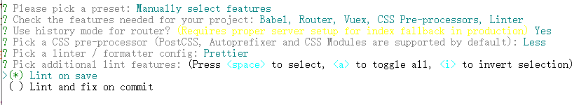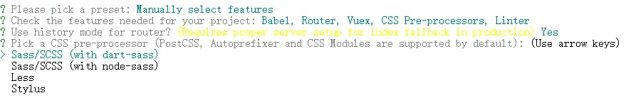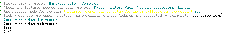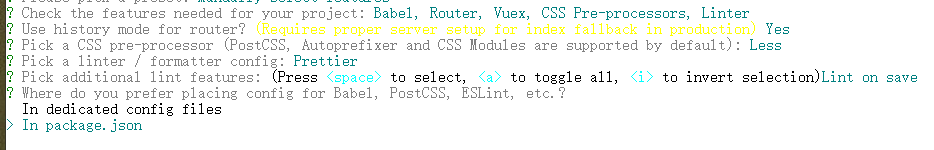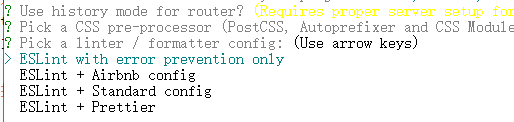 - default (babel,eslint) :选择默认配置项(后期自己安装需要的模块和进行配置)