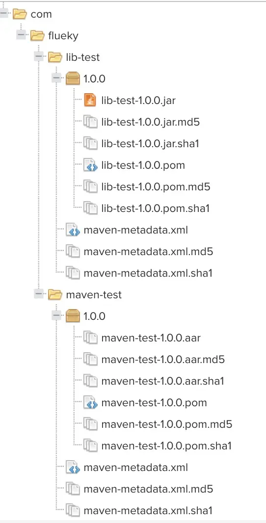 已本地私服为例,最终导出的远程库结构如下: