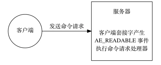 当一个客户端通过连接应答处理器成功连接到服务器之后, 服务器会将客户端套接字的AE_READABLE事件和命令请求处理器关联起来,当客户端向服务器发送命令请求的时候,套接字就会产生 AE_READABLE事件,引发命令请求处理器执行,并执行相应的套接字读入操作,如图所示。