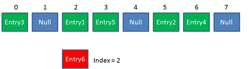 如"b":下标为2,将key为b的元素插到下标为2的位置(也就是Entry1)