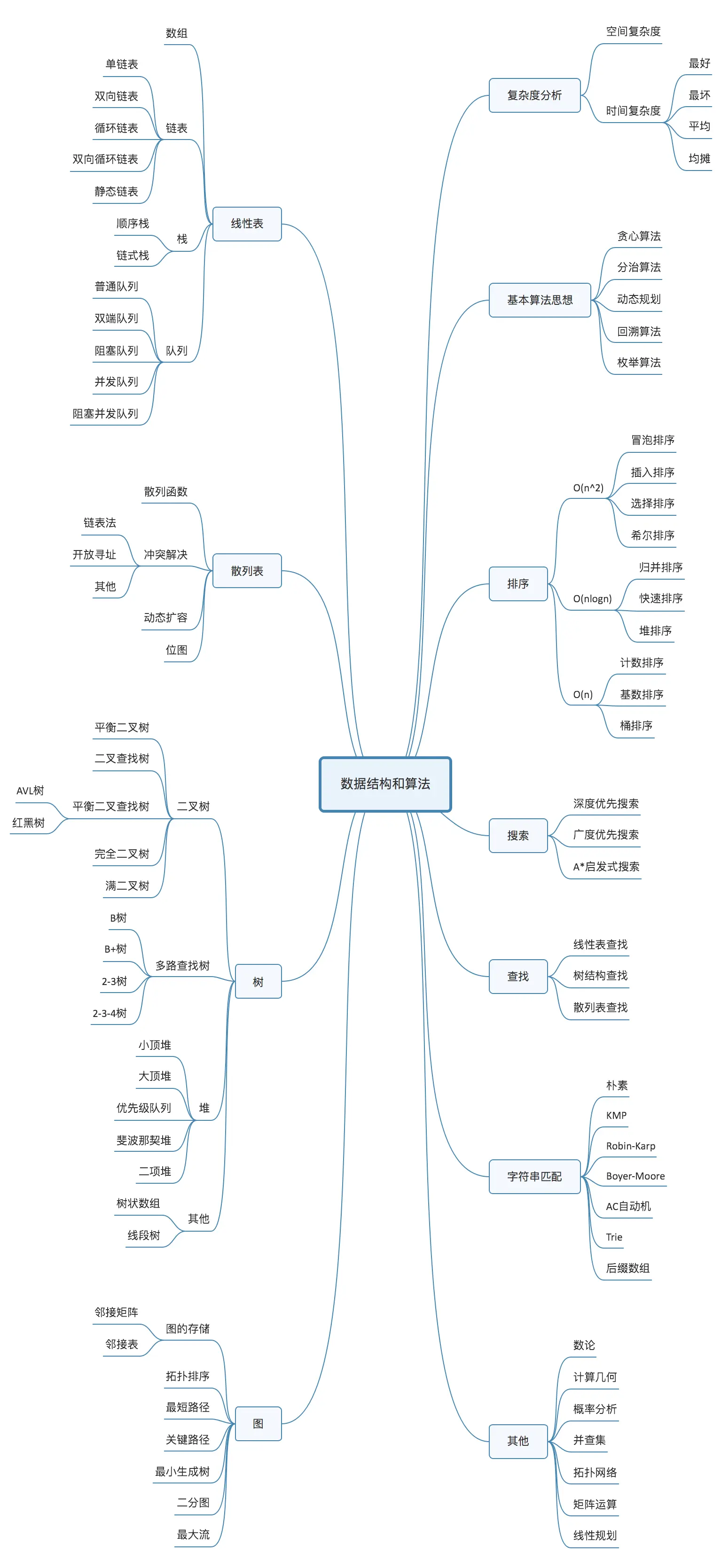 但是学习的重点是下面这20个最常用的、最基础数据结构与算法,不管是应付面试还是工作需要,只要集中精力逐一攻克这 20 个知识点就足够了