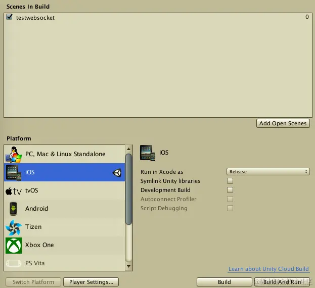 下载好Unity项目并打开 -> File -> Building Setting -> iOS-> Switch Platform -> Add Open Scenes -> Player Setting -> .NET 2.0 -> Build