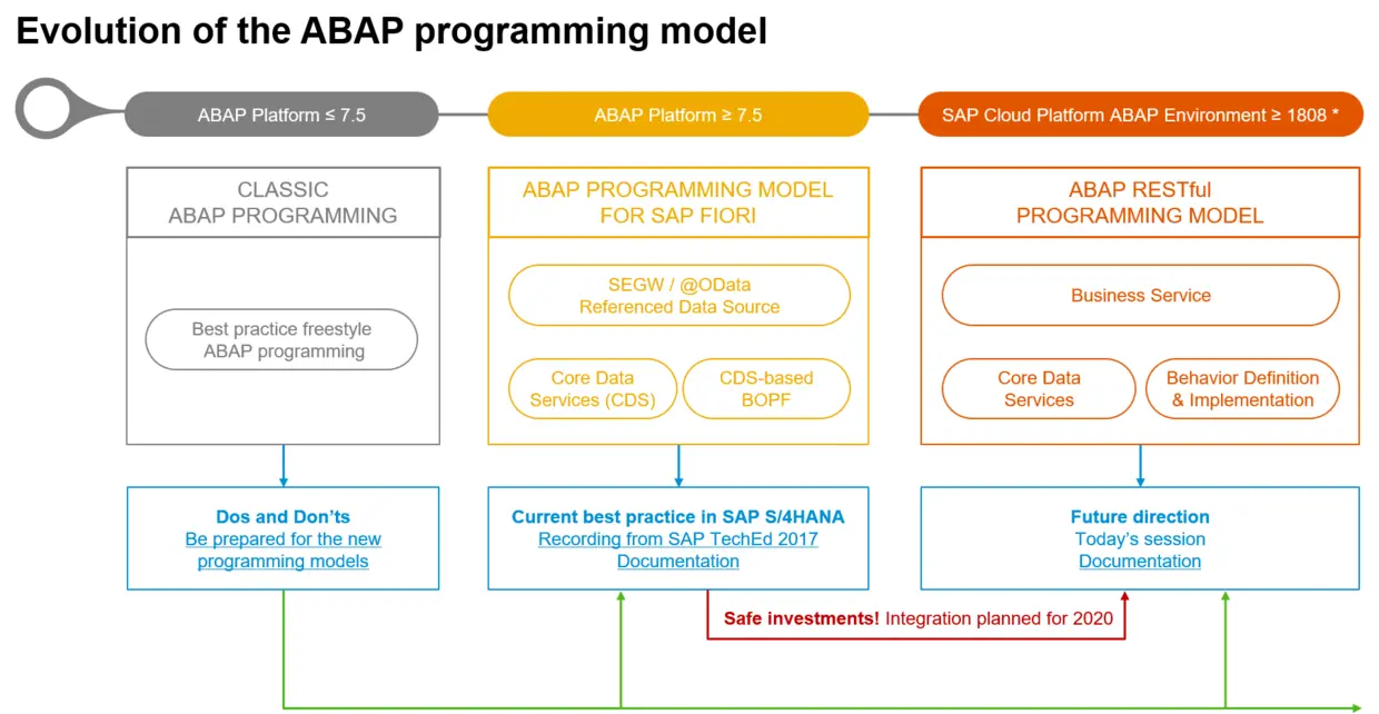 从以上短短的描述,我们能够感受到,近些年来ABAP技术栈随着SAP向云端转型而不断快速向前演进的趋势。