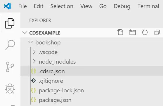 cds init执行完毕后,打开Visual Studio Code,界面如下,这些全是cds init自动生成的: