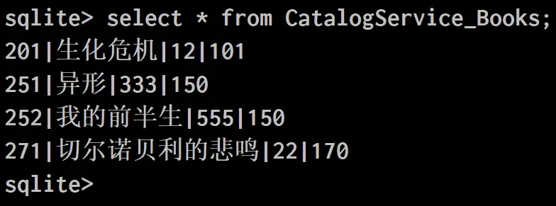 登录sqlite控制台,使用select语句查看成功从csv文件导入的数据:
