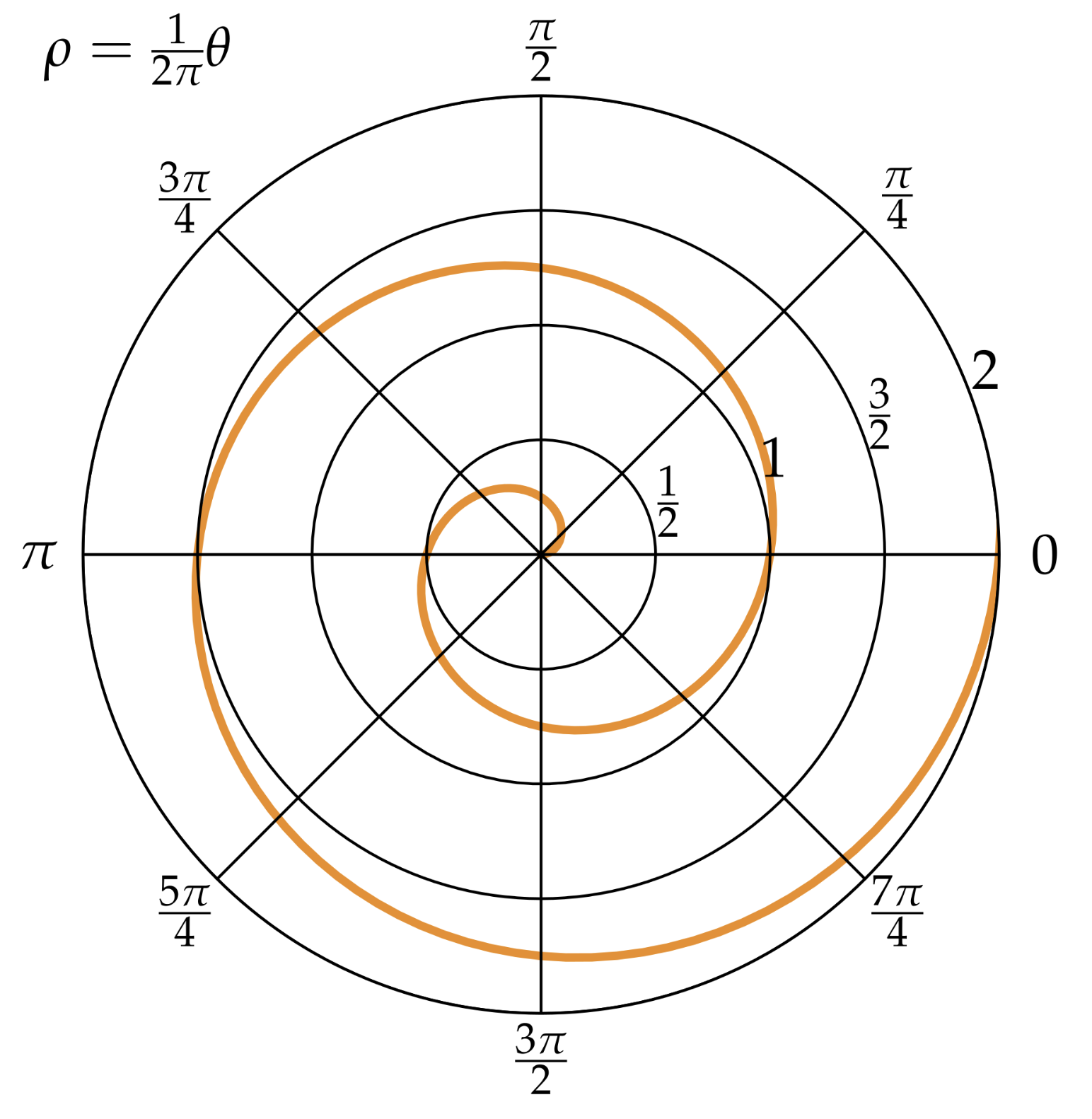 阿基米德螺线(Archimedean spiral),亦称“等速螺线”。当一点P沿动射线OP以等速率运动的同时,这射线又以等角速度绕点O旋转,点P的轨迹称为“阿基米德螺线”。它的极坐标方程为: