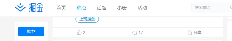 相信很多小伙伴和我差不多,上班第一件事情竟然是????打开掘金看沸点。哟嗐,沸点这里这个小滚动效果就很不错。往下查看的时候顶部的导航栏会消失,进而出现右下角的置顶按钮。这个特效的实现肯定是难不倒我们的前端er的。监听页面的scrollTop达到某一个值就可以实现了。但是使用起来很舒服。