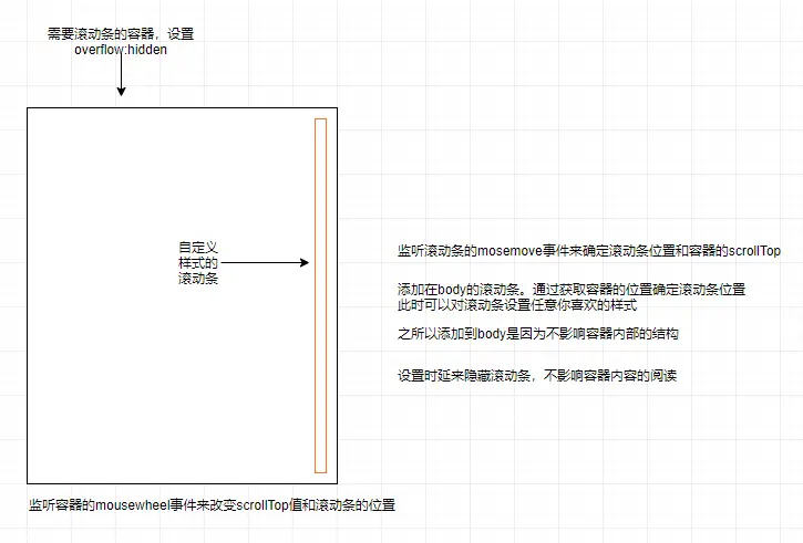 百度一下美化滚动条,基本上都是基于谷歌浏览器的滚动条美化。到了edge等非谷歌就嗝屁。但是真的还是想要做一个自己的美化的滚动条怎么弄呢?那就自己写一个吧。思路大概如下: