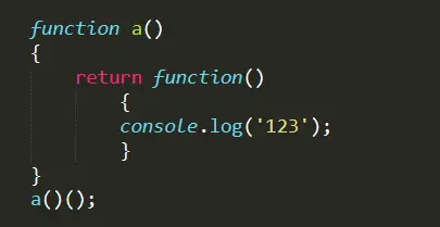 这里在函数a内返回了一个匿名函数,使用方法是:在调用函数a的语句后面再加一个“()”,可以看做向内调用两层