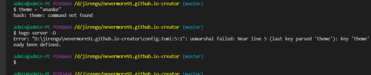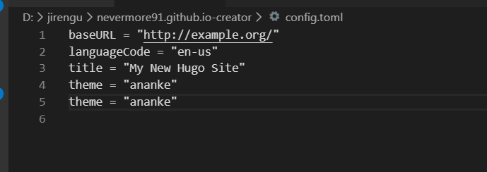 git submodule add https://github.com/budparr/gohugo-theme-ananke.git themes/ananke 下载一个ananke主题的文件