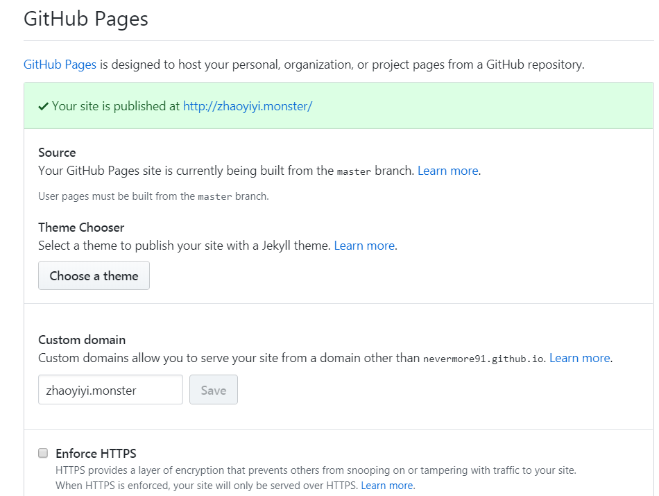 总结: 就相当于你写一个文章,首先上传到github上的仓库中,通过你购买的域名和你的仓库绑定,这样就可以直接通过你购买的域名访问(其实也可以直接挂在github pages上),不过这样似乎更炫酷! 域名: zhaoyiyi.monster/