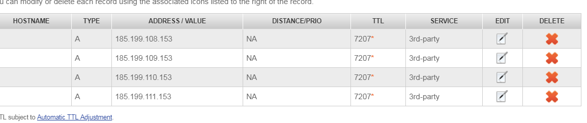 这时候GitHub Pages中的默认地址会改为你购买的域名,芳芳老师让不要用HTTPS,暂时不知道为什么。 在配置的时候也出现了一个小问题:就是把namesilo中的默认的DNS删掉换成: