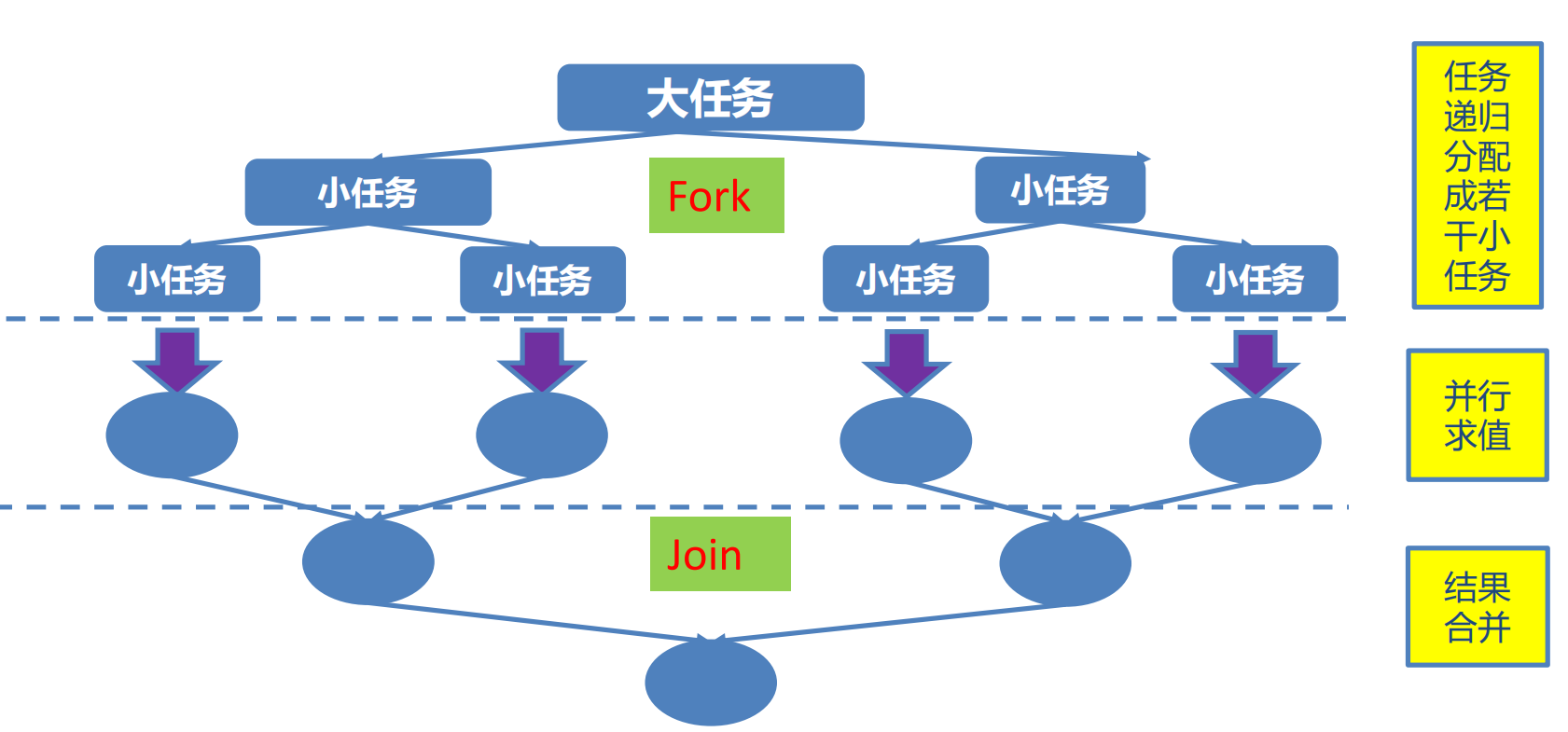 若干个小任务(拆到不可再拆时),再将一个个的小任务运算的结果进