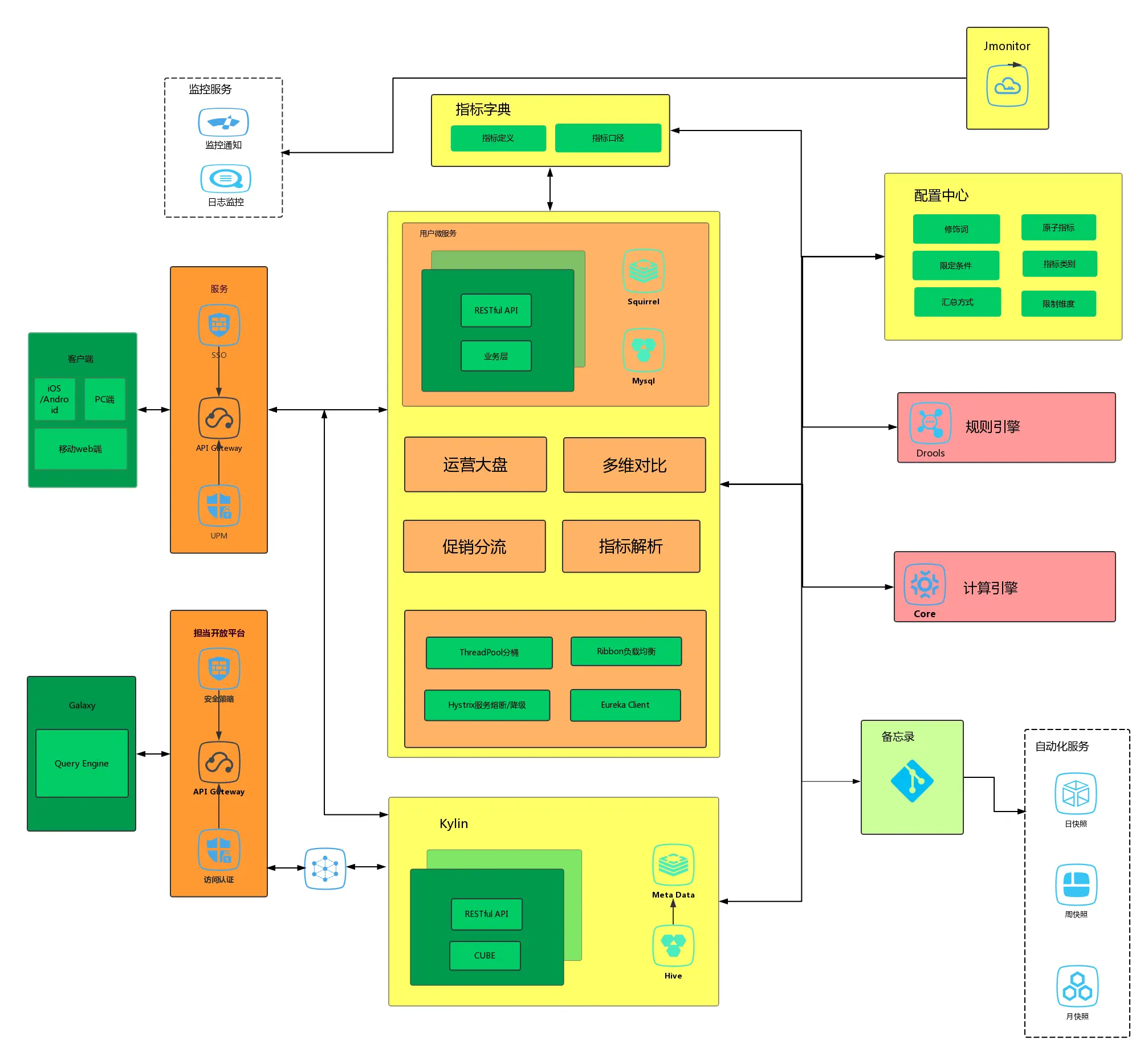 - 实时数据指标维度较为丰富,多维度聚合查询场景对服务层的性能要求较高,需要服务层能够支持较快的计算能力和响应能力;同时数据出现问题后,需要做好及时监控并快速修复。