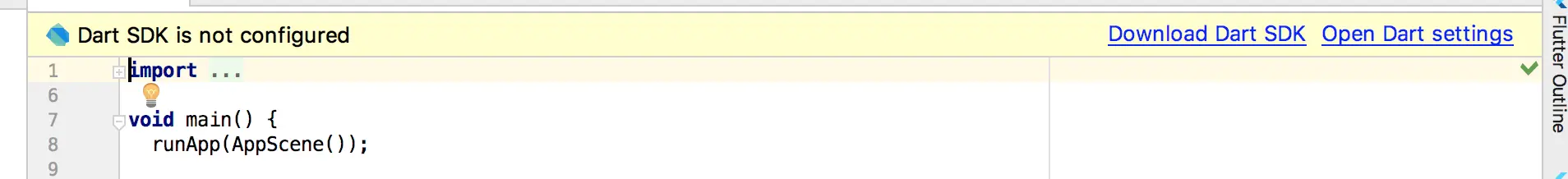 Andriod Studio Flutter Dart SDK is not configured 解决办法 孙杰同志 2019-12-11 865 阅读1分钟 1:点击提示Open Dart settin 2:然后来到如图2,选中flutter 3:配置Flutter SDK path 4:选择你下载保存的flutter路径 5:然后点击OK