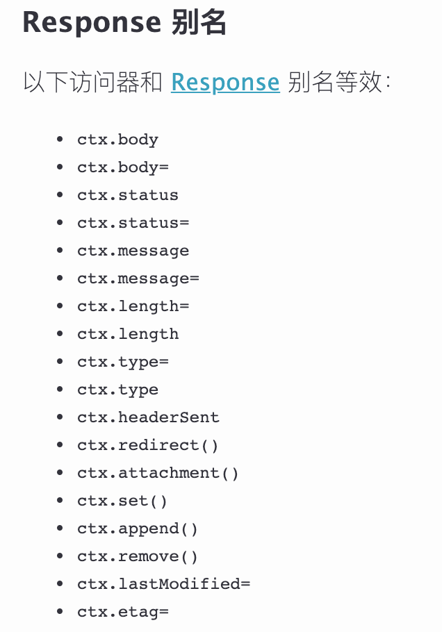 ctx.body = 'Hello Koa' // ctx.response.body = 'Hello Koa'