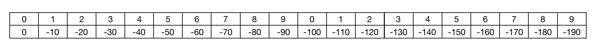 * 根据当前数字在数组中的下标乘以测量出的数字文本绘制高度取负值,得出坐标值。