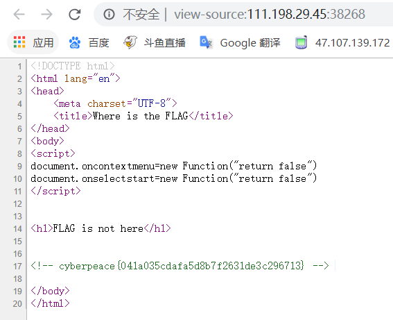 Ctrl + U,一样能弹出源代码页面,flag就藏在源代码里面。