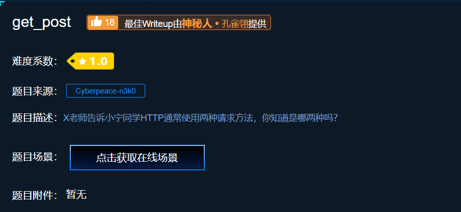 从题目大概能看出来这是一道有关于POST请求的题目,但具体的也不清楚,就打开一下页面。