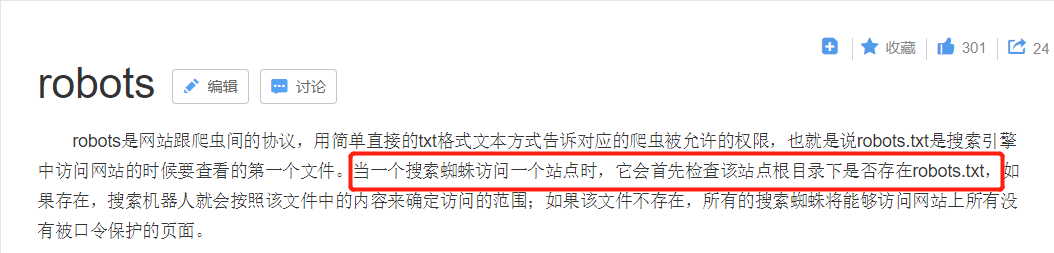 看题目描述是有关robots协议,但不是很清楚这个协议具体是干什么的。那就先打开网页看看,没什么发现就百度一下。(多去百度查资料,也是一种快速学习的方式)