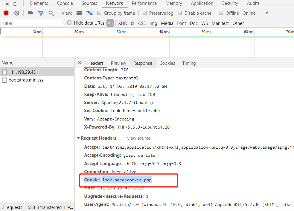 response请求体中的cookie字段,能看出来提示我们去访问cookie.php页面。