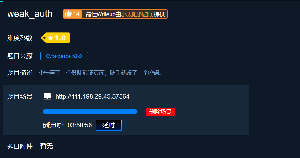 从题目来看应该有一个登陆的表单,需要我们输入正确的用户密码,就能得到flag。再从题目weak_auth弱认证能看出来,应该密码是一个弱密码,只需要用爆破即可。现在未知的是用户名,所以先随便填看能不能得到信息。随便填发现会提示