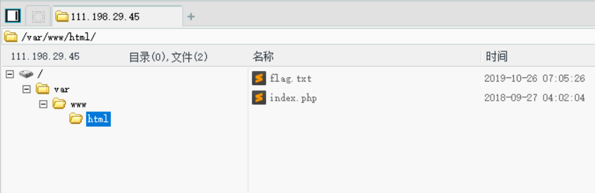 中国菜刀去连接,发现在index.php的同一个目录下面有一个flag.txt文件。