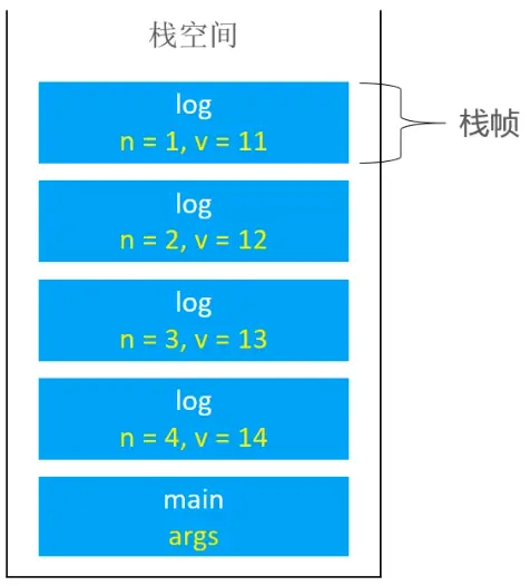 前面已经知道了,函数递归调用的过程,所以在每一次递归调用的参数,局部变量都会保存在对应的栈帧(Stack Frame)中,下图所示的结构,开辟给每个函数的栈空间,就叫做栈帧,所以每一个函数都有自己的栈帧
