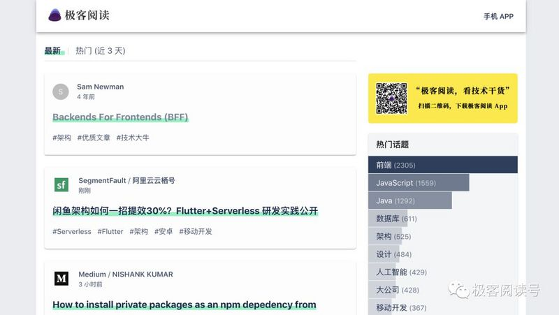 「极客阅读」汇聚了国内外最优质的技术博客、产品动态、公众号文章。开发者可以在极客阅读一站式的阅读到来自互联网技术大咖的文章