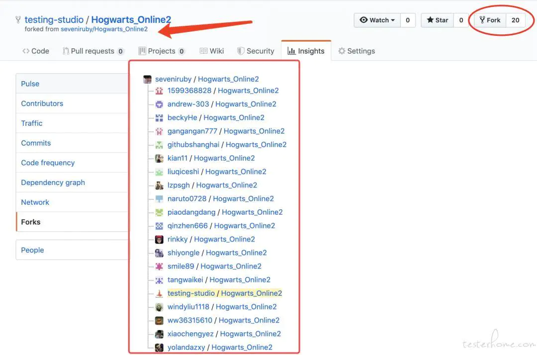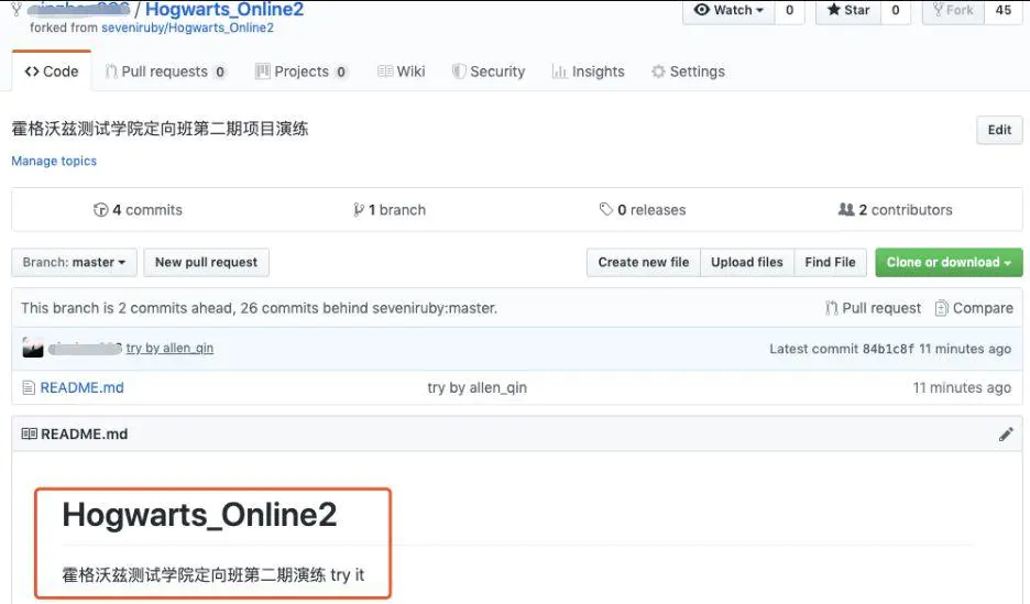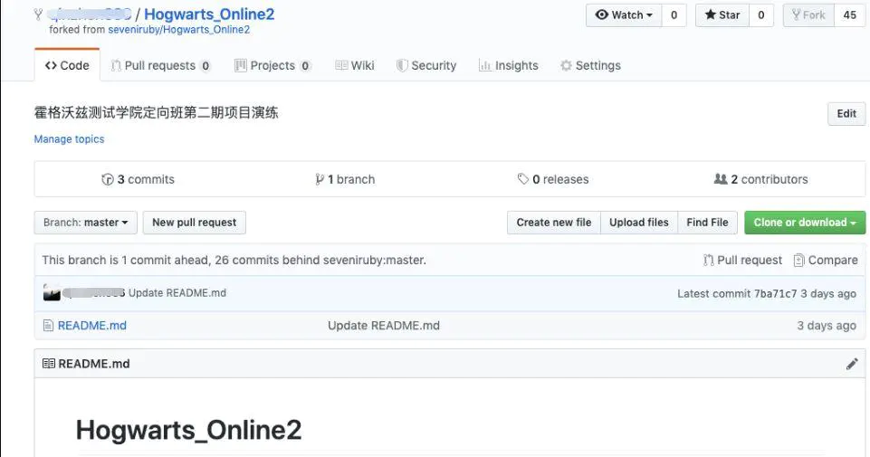 GitHub 上我们可以 fork 别人的项目,为了与别人产生一种协作关系,将他人的项目在自己本地创建也一个,这里以霍格沃兹测试学院(Hogwarts)的演练环境做演示: