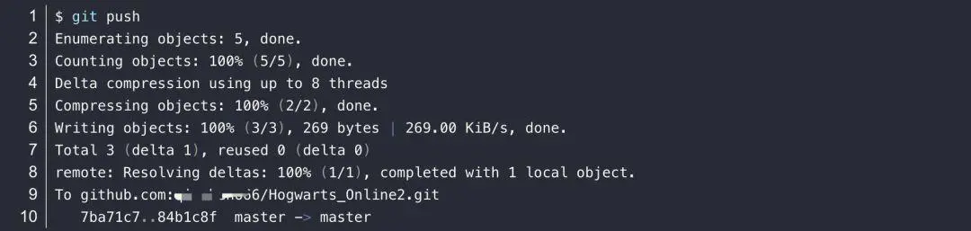 3.3)只用git push命令将本地仓库的文件推到远程仓库中去: