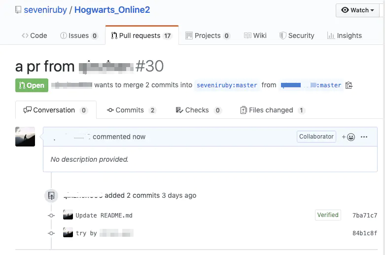 这个时候原仓库维护人员就可以收到pr,并对其进行审核、评论、merge或close的操作: