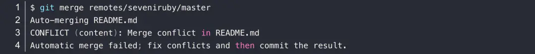 7.3) 这时候使用git merge将当前master分支与远端分支合并: