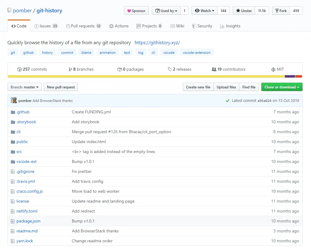 2019 年 2 月,一位名为 Rodrigo Pombo 的阿根廷帅哥在 GitHub 开源 git-history 项目,至今已获得 Stars 11.5 k。