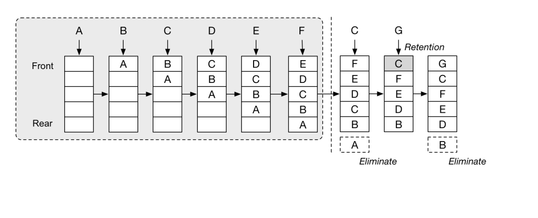 先进先出算法,很容易理解,核心原则是:先进行缓存的数据先淘汰掉。