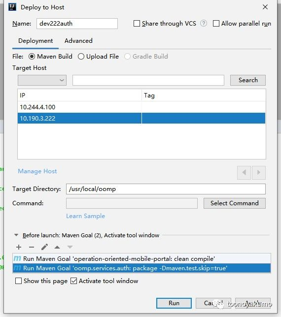 很显然我的 auth 需要部署到 222 机器上,然后他是一个 maven 项目,我希望它打包之后部署到目标机器的 /usr/local/oomp 下。