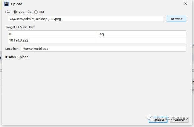 文件上传也是超简单的,可以直接点击 upload ,选择需要上传的路径,指定上传位置即可。