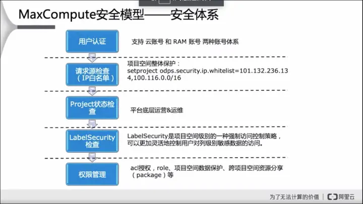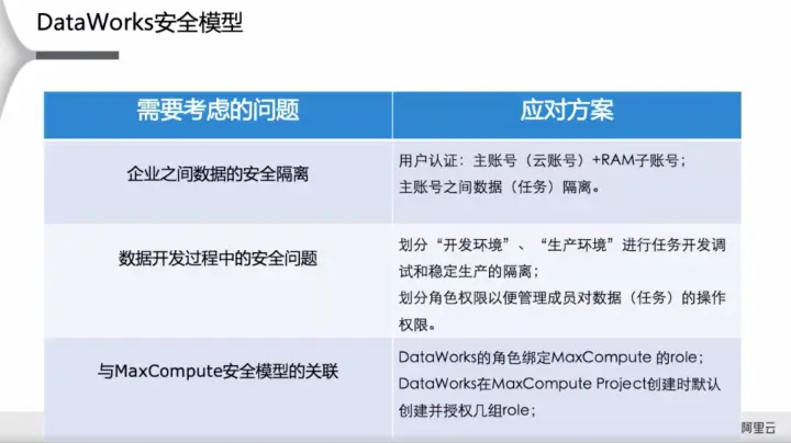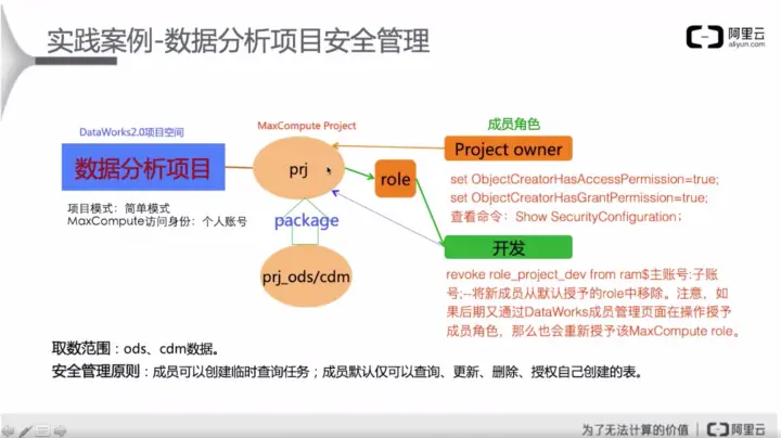 背景:用户在使用MaxCompute与DataWorks这两种权限模型不清楚,并且对于相关MaxCompute的权限执行语句也不太熟悉,以至于在自己的实际操作中不能建立完整的权限策略,导致权限控制的混乱,甚至在开发过程中时常遇到权限问题的错误,导致延误业务的推动进展,该篇文档集主要的权限知识点与一体,常用的MaxCompute权限语句,以及经典的开发环境和生产环境之间的赋权示例给大家做出做出介绍。