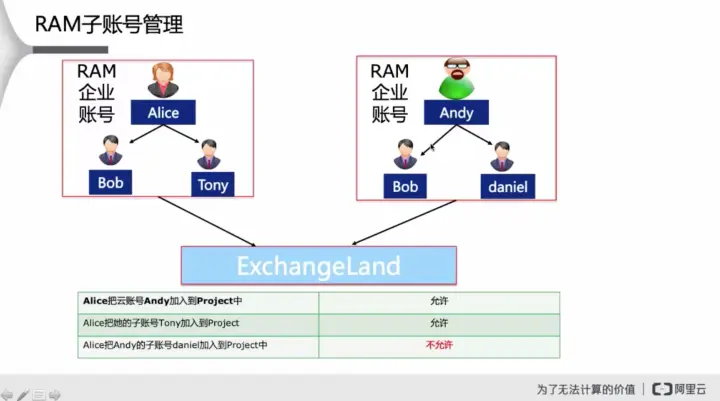 add user <username> --可为RAM子账户或其他云账户删除成员: