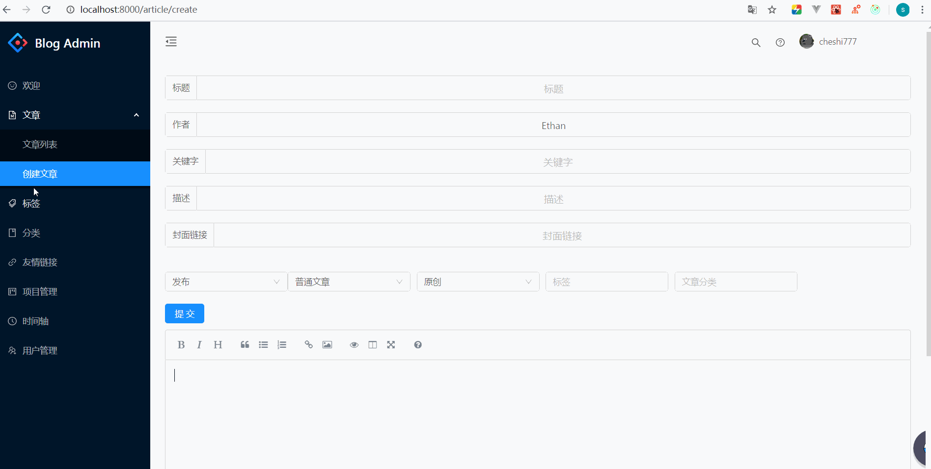 - 项目线上演示地址:Ethan的blog