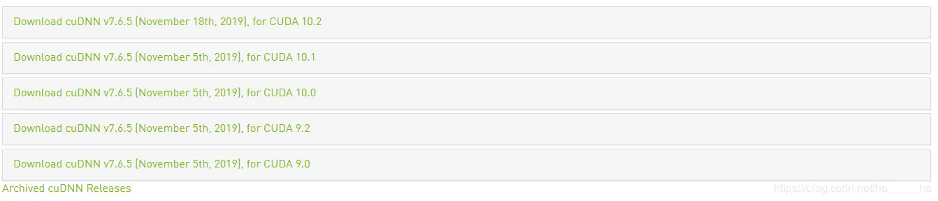 安装的cudnn版本要与cuda版本对应,注册英伟达账号后,登陆以下网站选择相应的版本下载,这里选择的是cudnn-9.0-linux-x64-v7.6.0.64。