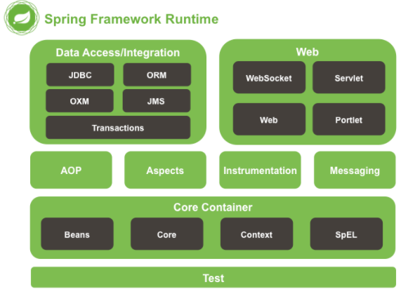 从上图 spring framework 整体架构图可以看到,这些模块被总结为以下几个部分: