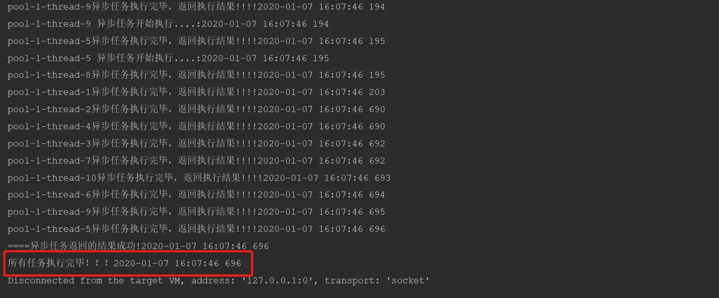 System.out.println(Thread.currentThread().getName() + "异步任务执行完毕,返回执行结果!!!!" + simpleDateFormat.format(new Date()));